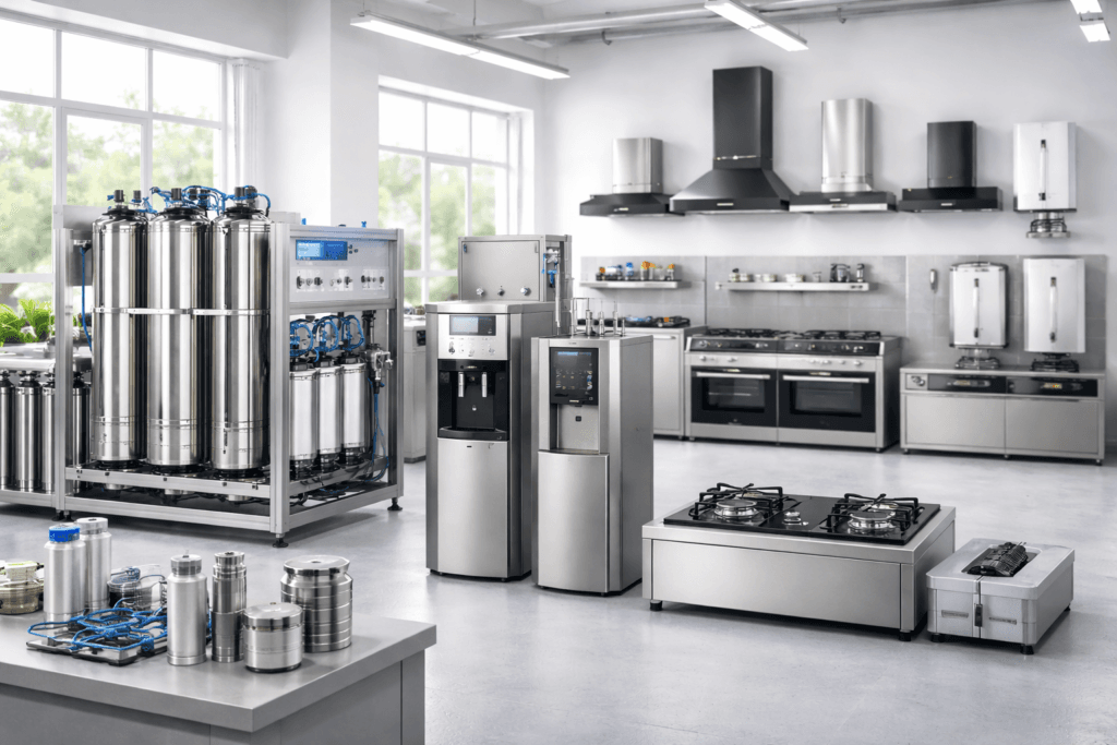 DALMIA Alkaline RO Systems is a group of companies engaged in manufacturing and trading water purification and utility appliances. We specialize in stainless steel water chiller machines, alkaline RO systems, and RO spare parts. Our portfolio also includes domestic kitchen chimneys, chimney parts, gas stoves, electric and gas geysers, and cool top solutions. We focus on durable materials, practical engineering, and consistent performance. Each product is designed to meet real residential and commercial needs. Quality control and hygiene are central to our manufacturing process. We believe in fair pricing and long-term reliability. DALMIA is committed to delivering dependable solutions built on trust and service support.